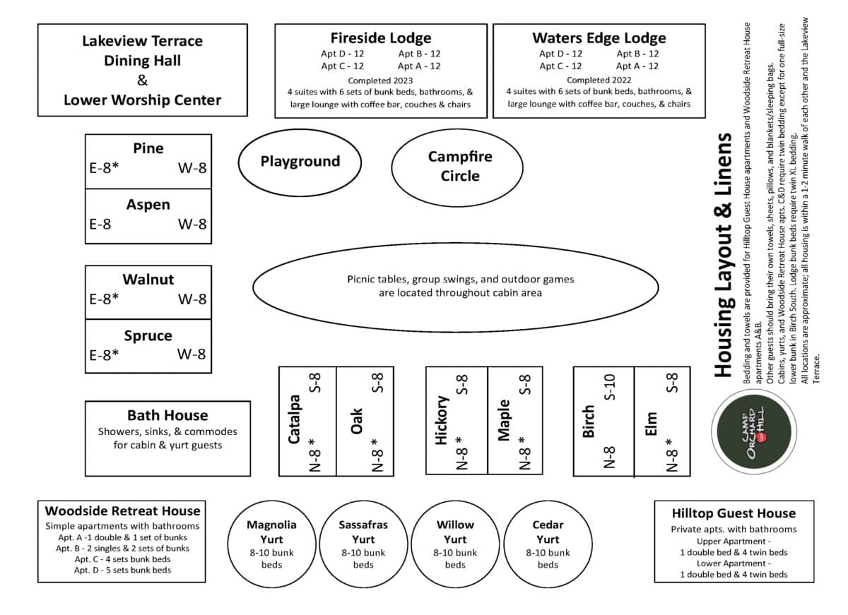 We recommend that Woodside Retreat House Apartment B be rented as a nurse’s station if your group chooses to designate a separate area to handle medical emergencies and illnesses. Please note, Camp Orchard Hill does not provide medical supplies or medical personnel for private retreats; please plan accordingly.